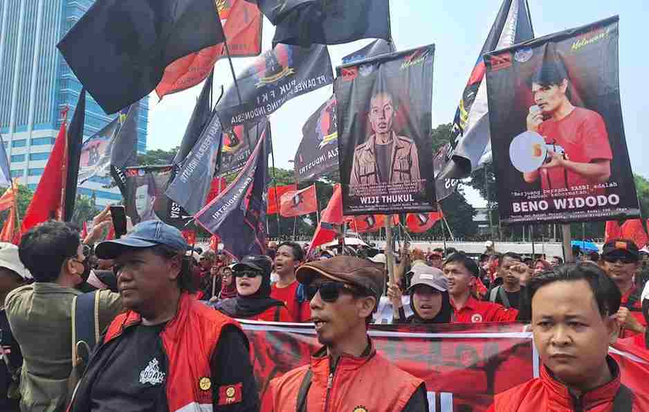 "Kami menuntut agar Omnibus Law atau Undang-Undang Cipta Kerja dicabut. UU ini tidak berpihak kepada buruh," tegas Sunarno saat berorasi di depan gedung DPR.